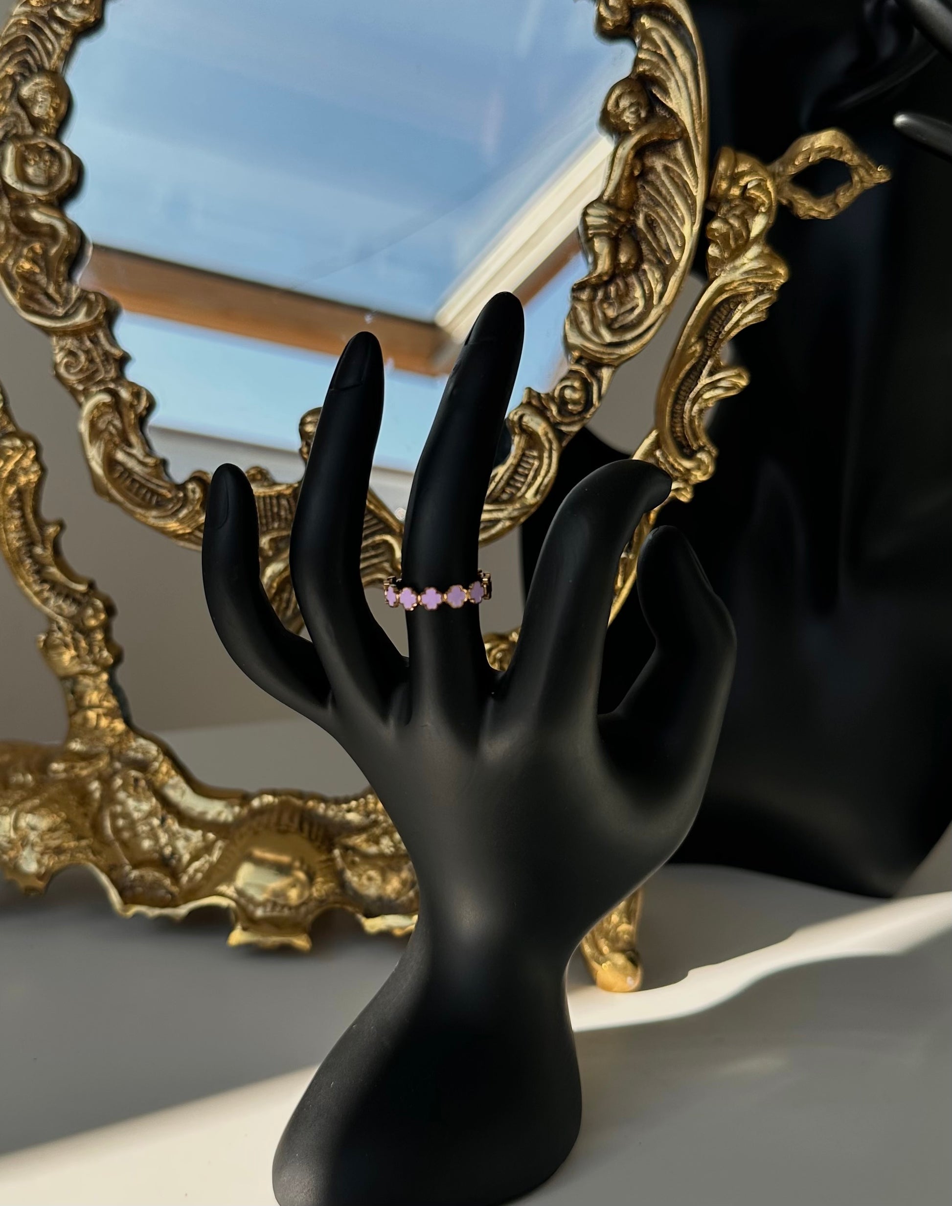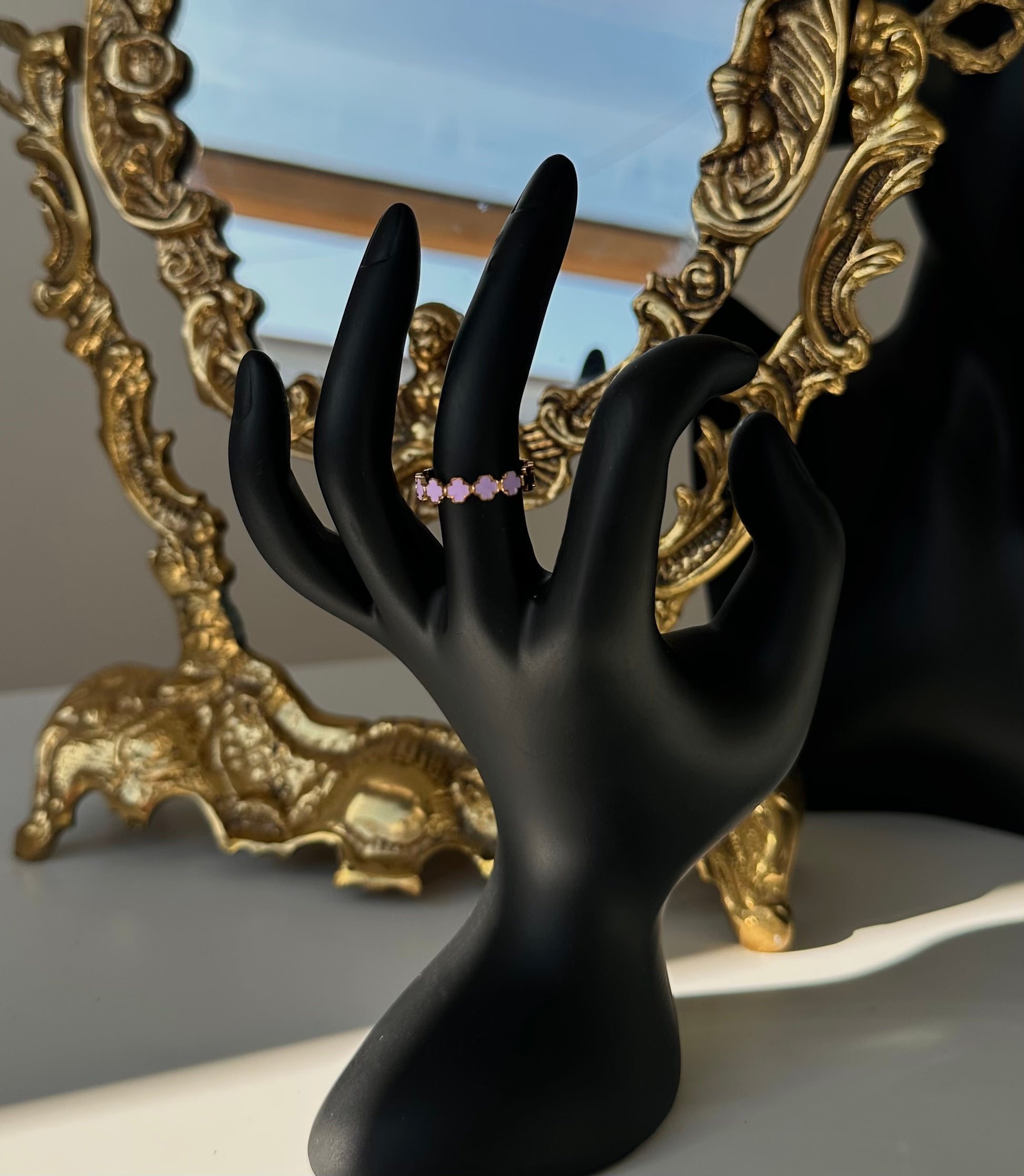 Bague trèfle violette.